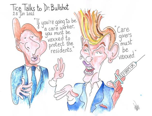 I did hear UNN’s David Clews refer to UK Reform’s deputy leader as Dr. David Bum; cue an artwork when he was Dr. Bullshot. He’s such a hair-dyed twit.